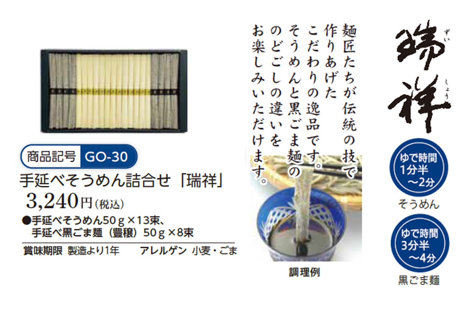 | 手延べ黒ごま麺調理方法 | 沸騰したお湯で3分半~4分茹でてください。 |