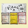| 内容量 | 総重量473g(即席にゅうめん 和風醤油味87.2g×2袋、即席にゅうめん カレー味78.3g×2袋、即席にゅうめん あごだし味71g×2袋) |
