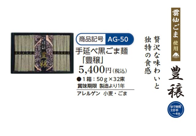 【AG-50】 手延べ黒ごま麺 豊穣 32束